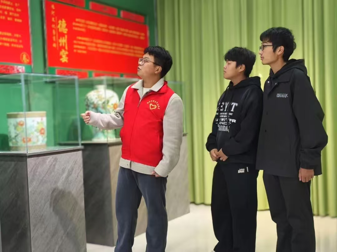 走进德州宋窑红绿彩博物馆,映入眼帘的是一片琳琅满目的红绿彩陶瓷作品,同学们仿佛进入一个五彩缤纷的世界,一件件巧夺天工、精美绝伦的陶瓷作品令人惊叹,让人心动。随后,同学们有序地参观各个展区,仔细聆听志愿者的介绍,了解德州宋窑红绿彩瓷器的历史渊源、制作工艺和独特的艺术风格。他们认识到,红绿彩瓷器以其独特的色彩、纹饰、造型和制作工艺而区别于其他瓷器,其纹饰精美细腻,内容丰富多样,每一个细节都展现出古代工匠们的高超技艺和无限智慧。