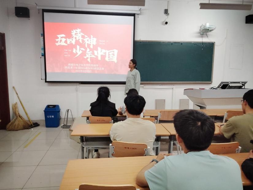随后,各班团支书带领同学们深入学习五四精神的丰富内涵,并阐释其深厚的历史根源,通过生动的故事和案例,让同学们深刻理解了五四精神的核心要义。同学们共同观看五四运动纪录片及“五四新青年”榜样短片。百年前青年的爱国壮举与当代青年在科研攻坚、社会服务等方面的卓越表现交相辉映,展现了五四精神在新时代的传承与发展。同学们在讨论环节积极发言,分享了各自对五四精神的理解以及在日常生活和学习中如何践行这一精神。许多同学提到,他们正以实际行动响应五四精神的号召,投身于科技创新、学术研究和社会实践中,力求在实现自我价值的同时,为社会发展和国家进步贡献自己的力量。