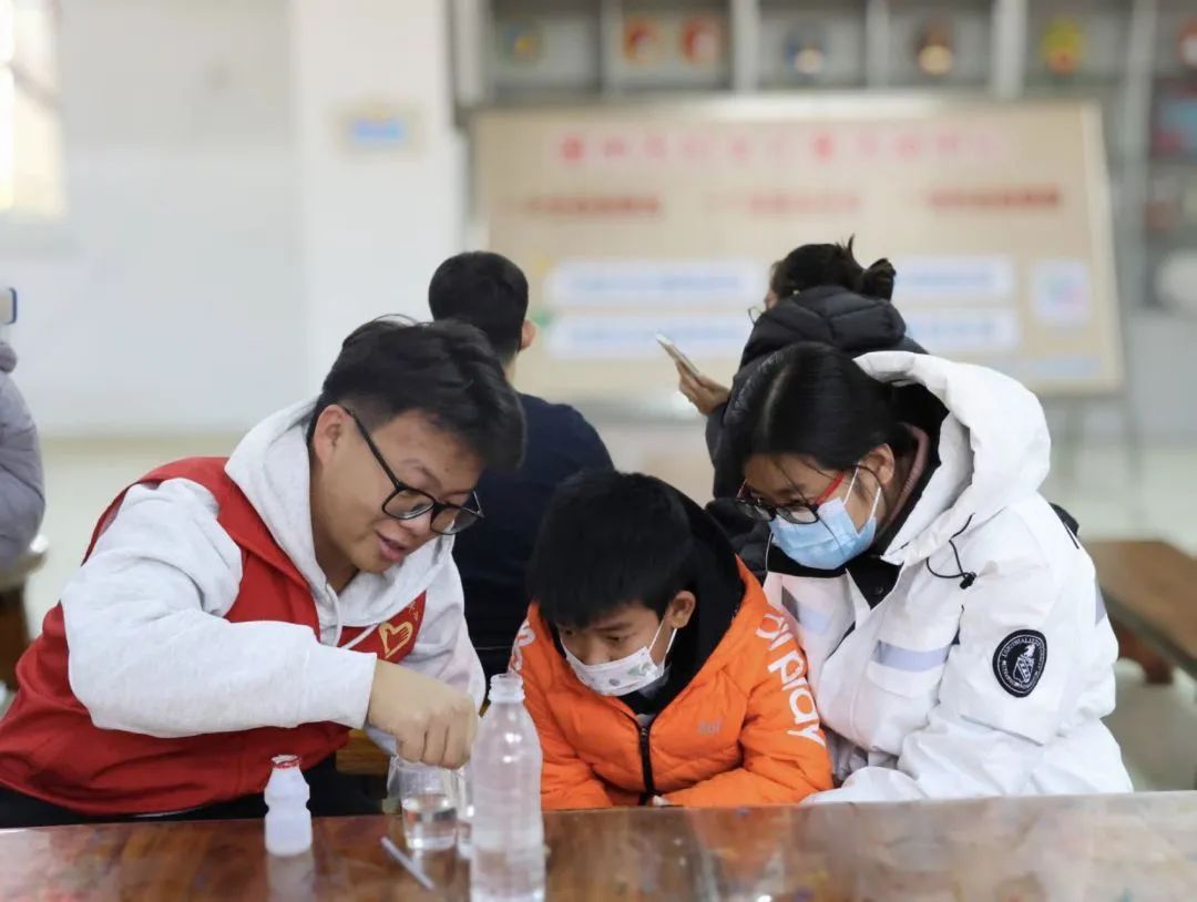 活动现场,志愿者们为参与活动的小朋友们普及压强的相关物理知识和原理,并用吸管、玻璃杯等道具演示“快速平分水”和“神奇的玻璃管”两个实验。实验中,志愿者引导小朋友进行独立思考和亲自动手操作,耐心解答小朋友们提出的科学疑问,进一步激发小朋友们崇尚科学、追求真知的精神。