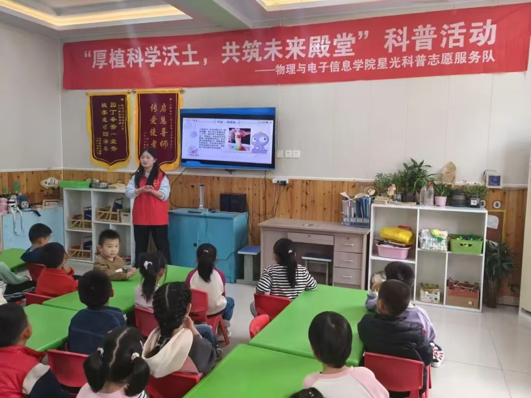 为深入实施全民科学素质行动,发挥物理基础学科特色,弘扬志愿服务精神,11月26日,滚球买球的app官网“星光”科普志愿服务队23互联本二团支部于德州市大拇指幼儿园开展“乘科技之舟,逐成长之梦”科普活动。