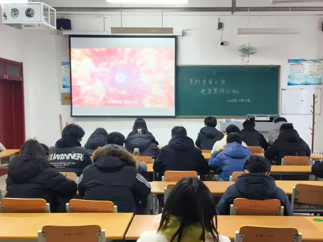 为了激发同学们对天文知识的兴趣,加深同学们对天文学的理解,提高个人的科学素养,滚球买球的app官网于12月17日在明理楼118教室举办了“漫游宇宙之夜,观摩黑洞之秘”观影活动。