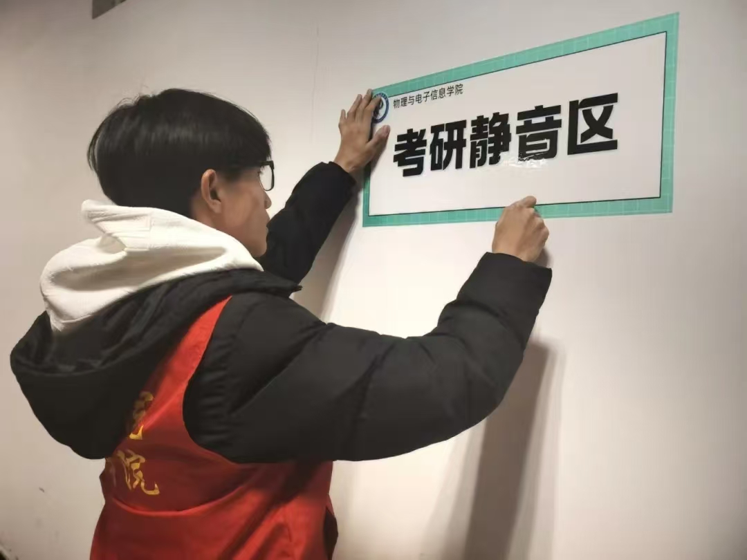 学院精心制作了“考研静音区”标志,并组织志愿者在教学楼走廊、考研自习室等考研学子集中学习的区域进行张贴。这些醒目的标志时刻提醒着过往师生注意言行举止,放慢脚步控制音量,避免在附近大声喧哗或制造噪音干扰,让守护安静成为全院上下的自发行动,为考研学子们打造出一片宁静的学习天地。同时,许多非考研班级的同学也积极响应,自发组织成立了“静音守护小组”,在课间休息和课外活动时,主动提醒周围同学保持安静,形成了全院师生共同助力考研的良好氛围。