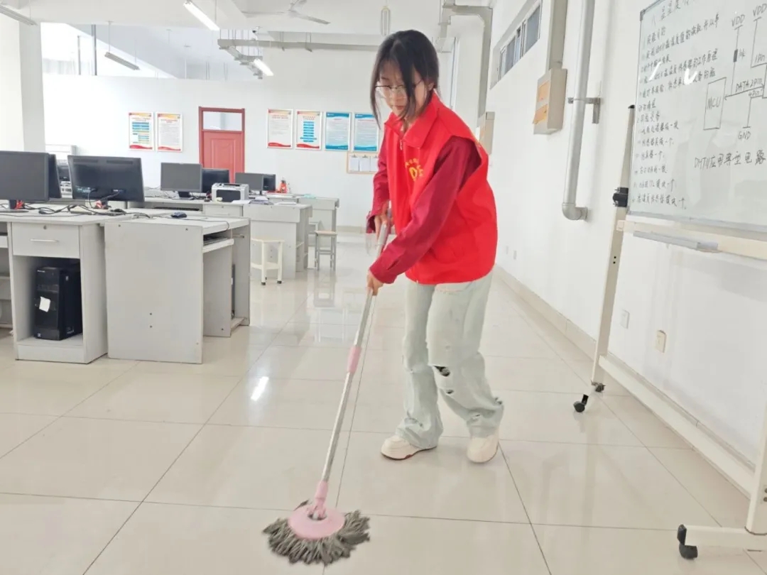 全体学生会成员以部门为单位,将成员们划分成多个清扫小组,分工协作,明确每个小组的负责区域与具体任务,实现清扫工作的全面覆盖、精准落实。随后,志愿者们拿起预先准备好扫帚、抹布等清洁工具,对实验室进行细致清扫,包括实验台位置重新摆放、地板杂物灰尘清理、个人工位清理等。在清扫过程中体验到了劳动的快乐增进了同学之间的感情,整洁的实验室环境也令大家学习效率有所提升。同时,大家还仔细检查了实验室各个角落。在同学们的努力下,实验室变得焕然一新,确保实验室环境整洁有序,各项性能指标经检查均正常,为后续实验教学与科研项目的开展提供了有力保障。
