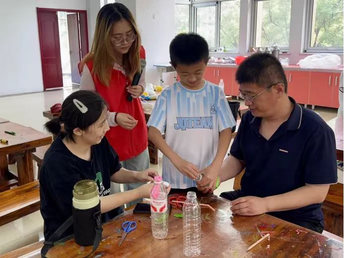 活动中,志愿者们详细生动地展示了“空气号角”、“奔跑的小鸡”、“多孔喷水实验”三个趣味科学实验,不仅一一呈现了实验所需的材料,还以动态步骤图的形式,清晰演示了操作流程。志愿者们一边细致地讲解,一边现场操作,让小朋友们直观地看到奇妙现象,进而深入讲解相关原理。志愿者们积极引导小朋友们参与互动,鼓励大家大胆提问、踊跃发表见解。面对小朋友们提出的各种奇思妙想,志愿者们耐心解答,现场气氛热烈活跃。