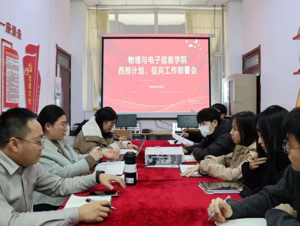 会议主要部署了西部计划与征兵两项工作,明确了两项工作氛围营造与重点目标。学院辅导员赵剑桥和纪洪飞依次围绕西部计划和征兵核心政策进行系统解读,安排部署本学年的两项工作。学院党委副书记刘秀华强调,西部计划工作和征兵工作是校(院)人才培养的重要环节,关乎学生的切身利益。针对这两项工作,一是要紧盯目标任务,帮助毕业生规划职业路径,做好毕业生西部计划参与和应征入伍的服务保障工作;二是要明确时间节点,拓展宣传渠道,将西部计划和参军入伍相关政策向低年级学生及毕业生讲清讲透,将西部计划工作和征兵工作做细做好。
