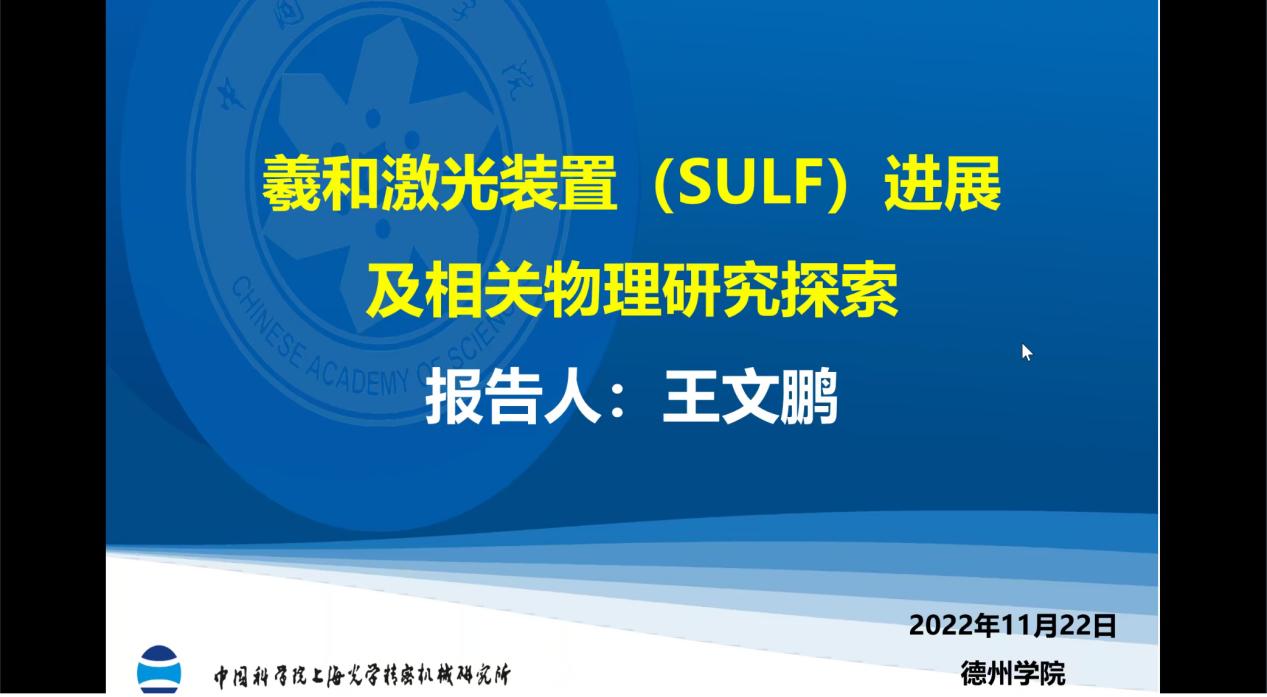 11月22日下午,滚球买球的app官网邀请物理学专业优秀校友、上海光机所王文鹏研究员通过腾讯会议进行了线上2023年国家自然科学基金申报指导交流及学术报告《羲和激光装置(SULF)进展及相关物理研究探索》。滚球买球的app官网全体教师参加了会议。