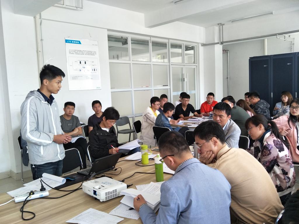 2018年5月3日,济宁中兴通讯联合德州学院滚球买球的app官网的指导教师,于中兴通讯济宁基地,顺利完成第一批校企合作专业(2014级移动通信技术方向)共计54名同学的毕业论文答辩工作。答辩过程中,同学们以多种形式展示自己的毕业论文(设计)成果,答辩组评委老师,针对每位同学的具体问题,一一作出解答。最终,圆满指导学生完成最后一项本科作业。