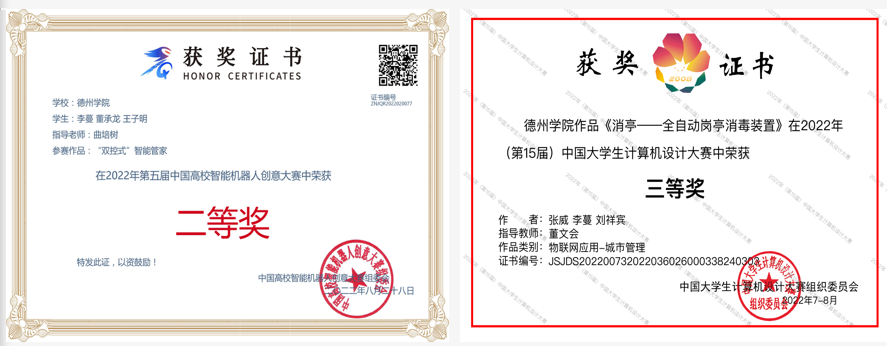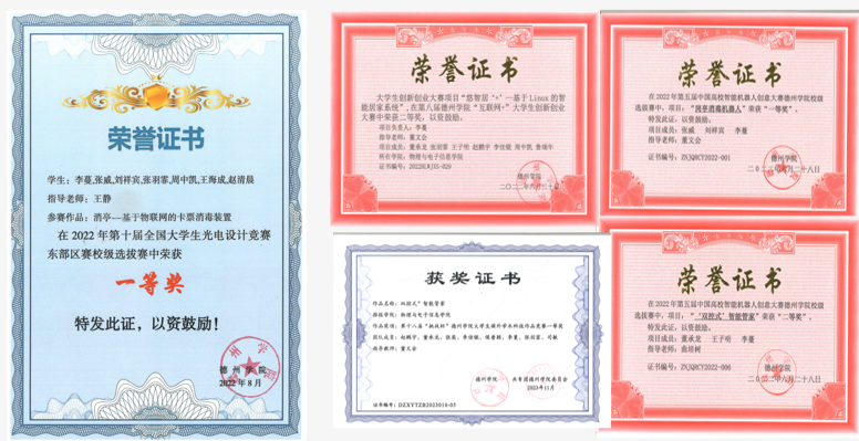 自大一伊始,李蔓便投身于创新发明实验室,她以高标准严要求鞭策自己,勤奋钻研,勇于探索,在大学生科技文化竞赛的舞台上大放异彩,屡获佳绩。她以第一作者发表论文1篇,并获得中国高校智能机器人创意大赛国家二等奖、中国大学生计算机设计大赛国家三等奖、全国大学生电子设计竞赛省一等奖、ICAN大学生创新创业大赛省一等奖、大学生光电设计科技创新大赛省一等奖、物联网创造力大赛省级一等奖等竞赛奖项20余项。