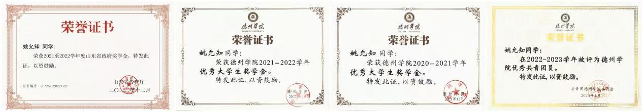 姚允知,德州学院滚球买球的app官网物理学(师范类)专业2020级本科生,汉族,共青团员。在学业发展方面,她在2020-2021学年与2021-2022学年连续保持专业领先,学业成绩与综合素质测评成绩均稳居年级首位。社会实践领域,她以双重志愿者身份践行社会责任:作为“沂蒙微梦想团队”核心成员持续助力家乡建设,同时加入“长腿叔叔信箱志愿者团队”为乡村儿童构筑心灵港湾。此外,她多次参与德州市德城区天衢街道文明城市创建工作,在德州学院疫情防控、暑期“三下乡”社会实践等活动中亦屡见身影。科研创新领域,她曾深度参与导师主持的山东省自然科学基金青年项目《镧系氟化物的近红外二区荧光增强机制及生物成像研究》,并在全国大学生科技创新竞赛中多次斩获重要奖项,展现出扎实的科研素养与创新能力。